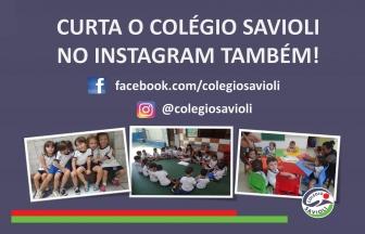 SIGA, CURTA, COMPARTILHE E ACOMPANHE AS ATIVIDADES DO SEU (SUA) FILHO (A) NAS REDES SOCIAIS DO COLÉGIO SAVIOLI. Facebook: www.facebook.com/colegiosavioli Instagram: @colegiosavioli